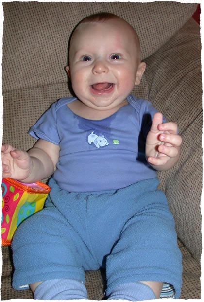 Hannah is up a few times a night to feed as well. The stat I heard from the National Sleep Foundation was that 70 per cent of babies sleep through the night (meaning a five hour stretch) by nine months, and many don’t do it until they’re a year and a half or more. Of 16 moms in my mommy group who all have babies that were born in September or October, none are sleeping more than five hours at a stretch, so if you’ve had four once in a while, I think that’s pretty great.
