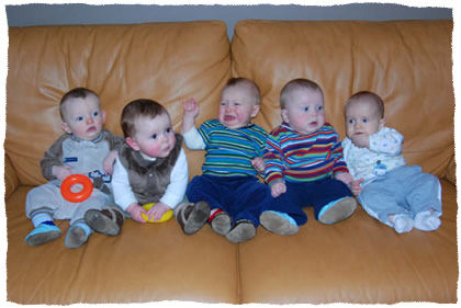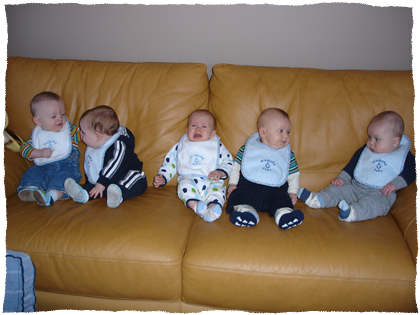 One of the moms I hang out with took some pictures of the boys last week. We tried to get one where they were all happy but as you can see it didn’t work out. From left to right - Thomas, Owen, Brayden, Simon and Ben.