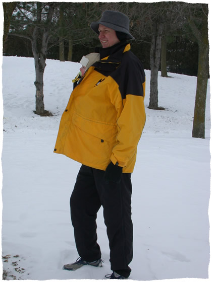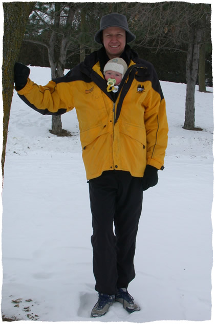 Despite the cold temperatures, Topher and I are taking Simon for walks at least every other day. The snow makes it hard to push our stroller so we’re using our baby carrier instead. Christopher zips his coat over Simon’s body to keep him warm so all you can see is his little head poking out. I guess this is what Topher would look like if he had a beer gut.