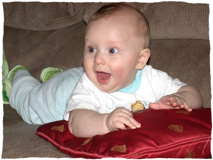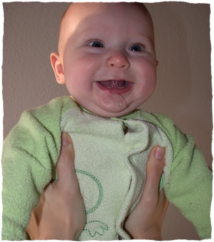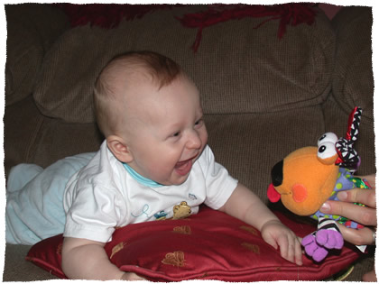 These days Simon is much more animated, aware and active. He has figured out how to roll over, he grabs at any object in reach with the sole purpose of placing it in his mouth and he has figured out how to take his soother out and put it back (sometimes). Best of all he has a sense of humour and a great laugh.