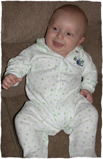 On a brighter note, Simon has started to smile. Christopher and I are pretty confident they are real smiles and not just random muscle movements since he’s doing it every day now. As soon as we capture one on film we’ll post a picture.